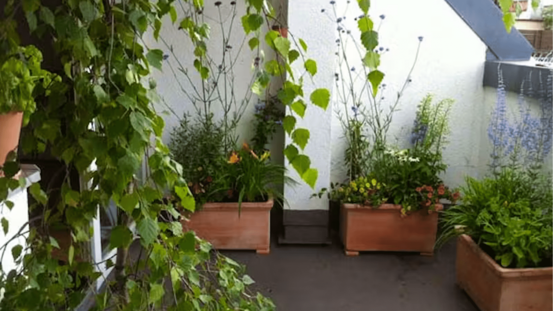 Neben Bodendeckern kannst du auch verschiedene Topfpflanzen verwenden, um deinen Balkonboden zu verschönern. Die Kombination von verschiedenen Pflanzgefäßen auf dem Boden kann den Balkon lebendiger machen und den Boden trotzdem gut kaschieren.