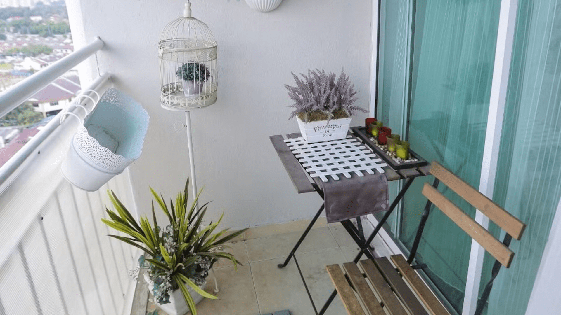 Neben Pflanzen kannst du deinen kleinen Balkon auch mit ein paar Dekorationsideen verschönern, ohne den Platz zu überladen: