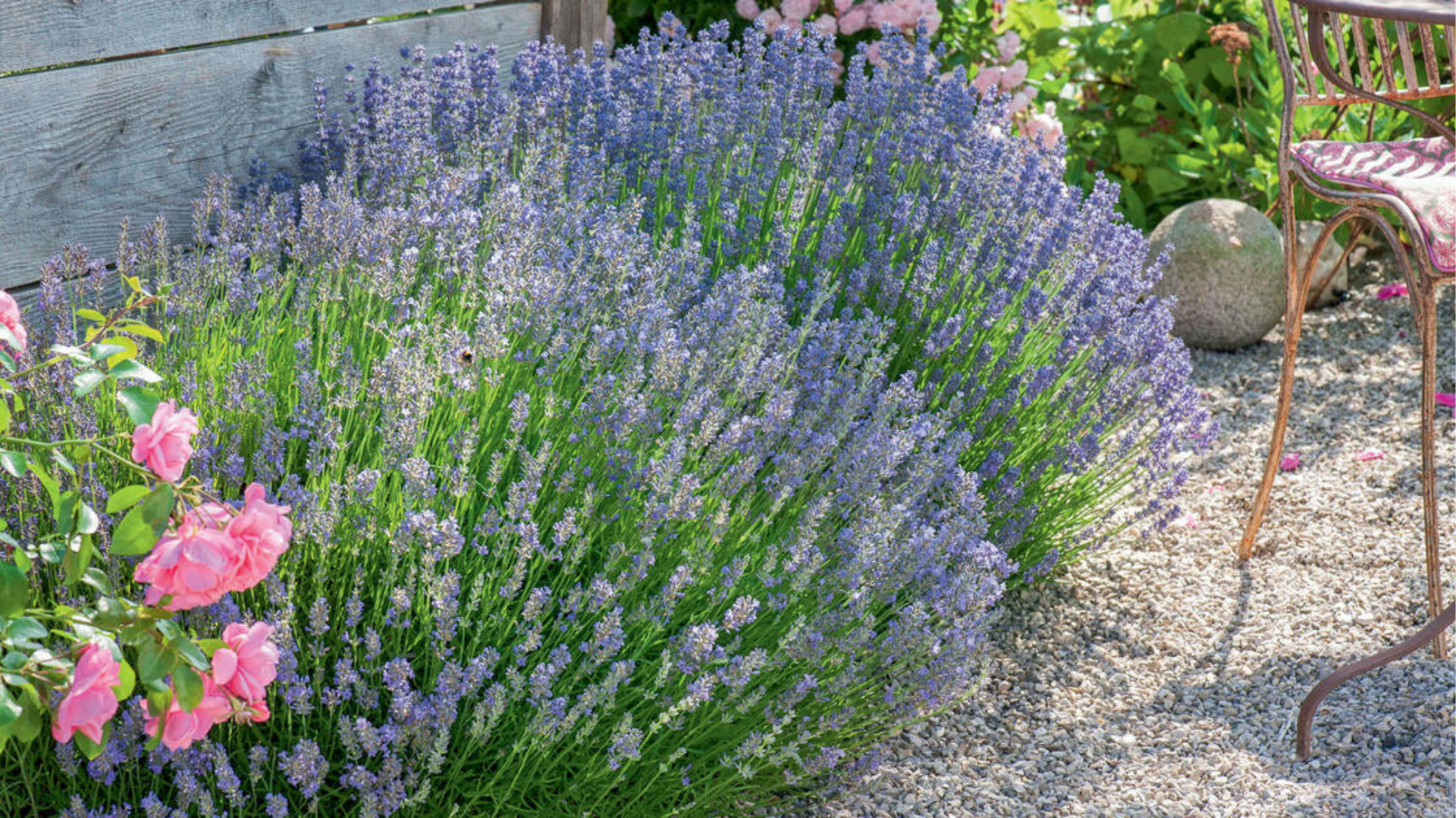 Im Gartenbeet ist Lavendel ein echter Blickfang. Er passt wunderbar zu weißen oder rosafarbenen Sommerblumen wie Rosen, Margeriten oder Schleierkraut. Diese Kombination wirkt elegant und frisch – perfekt für einen romantischen Gartenstil.