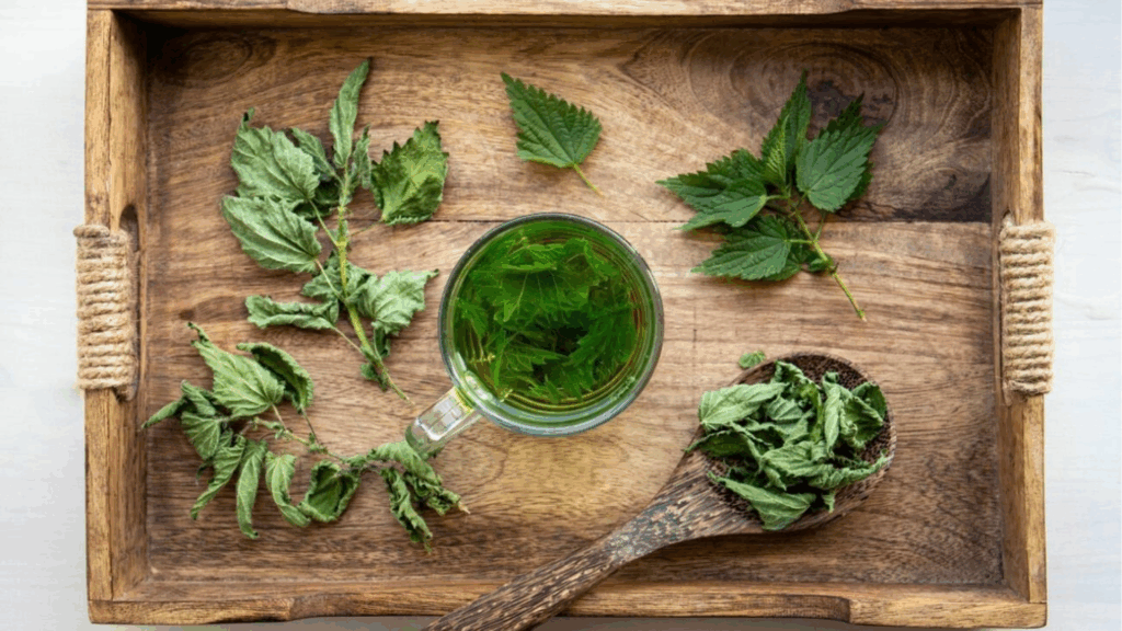 1. Kräuter-Tee: Übergießen Sie eine Handvoll frischer Brennnessel-Blätter (oder getrockneter Blätter) und einige Kamillenblüten mit 500 ml kochendem Wasser.